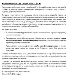 SRCE se pridružuje najoštrijoj mogućoj osudi tog necivilizacijskog čina, koji je s pravom izazvao ogorčenje Saveta roditelja škole „Vasa Pelagić“, i postavlja pitanje da li se na to mislilo kada je nastao sada već čuveni slogan SNS „Za našu decu“.