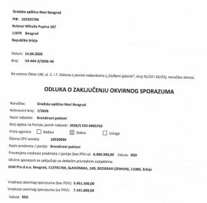 Najnoviji okvirni sporazum koji je Opština Novi Beograd sklopila sa firmom „DLM Pro d.o.o.“ iz Zemuna, u vrednosti od 6 miliona dinara (bez PDV-a), predstavlja školski primer bahatosti i neracionalnog trošenja novca svih građana Novog Beograda. Dok se u mnogim blokovima deca igraju na ruiniranim i nebezbednim igralištima, opštinska vlast odlučuje da ogroman novac usmeri na nabavku brendiranih poklona. Da li su, na primer, Novobeograđanima u ovom trenutku zaista preči privesci, USB stikeri i „setovi sa pićem i čašama“ od novih ljuljaški, klupa ili bezbedne podloge za našu decu? Za 6 miliona dinara moglo je da bude kompletno rekonstruisano i opremljeno nekoliko dečijih igrališta širom opštine.